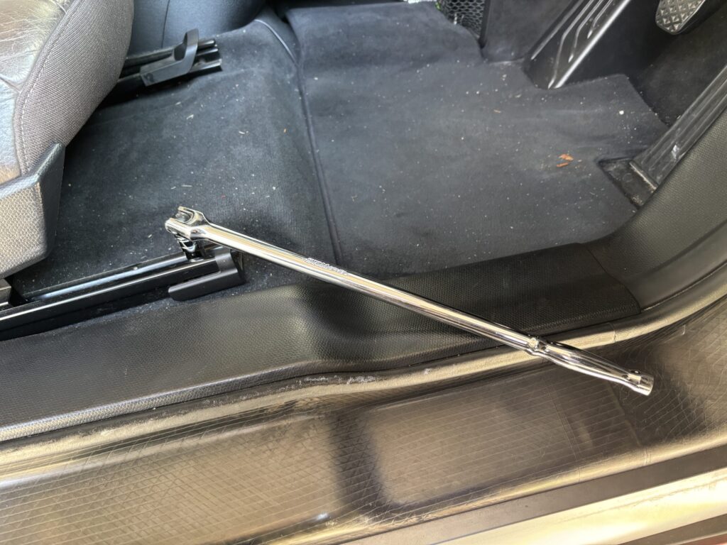 ボルトがかなりきつく締まっているので、ブレーカーバーを使うのがおすすめです。ラチェットで緩めようとすると最悪壊れます。