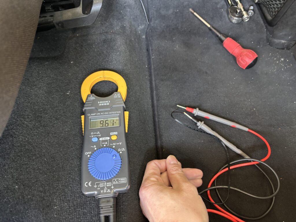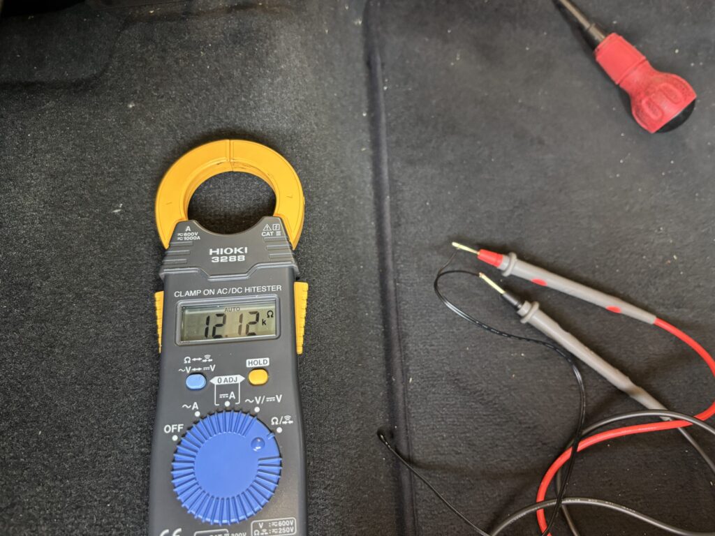 ここで確認するのは、サーミスタにつながる2本の線です(No.1とNo.3)。正常なら一定の抵抗値(数kΩ〜数十kΩ)が出るはずですが、断線していると数値が「無限大(導通なし)」になります。案の定、私のi3も数値はピクリとも動きませんでした。これで「やっぱりサーミスタ断線だ」と原因が確定しました。(すいません、テスターの画像なし・・・・)