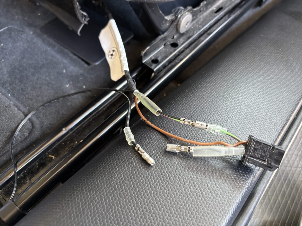 「シートの奥の方へ入れなくていいの?」と思うかもしれませんが、だいたいの温度が拾えればOKなのでこの位置で問題ないはず。これで車側は「(断線しておらず)温度センサーからの反応あり」と認識してくれるようになるわけです。
