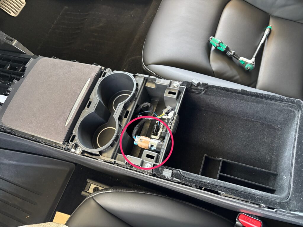 テスラで一番確実、かつ車に負荷をかけない電源の取り方は 「センターコンソールのシガーソケット」 からの分岐です。